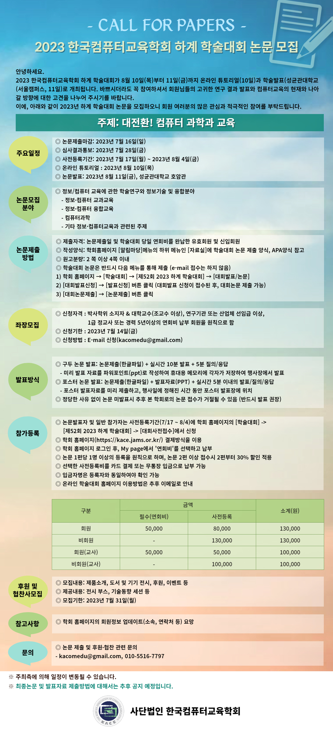 2023 한국컴퓨터교육학회 하계 학술대회 논문 모집