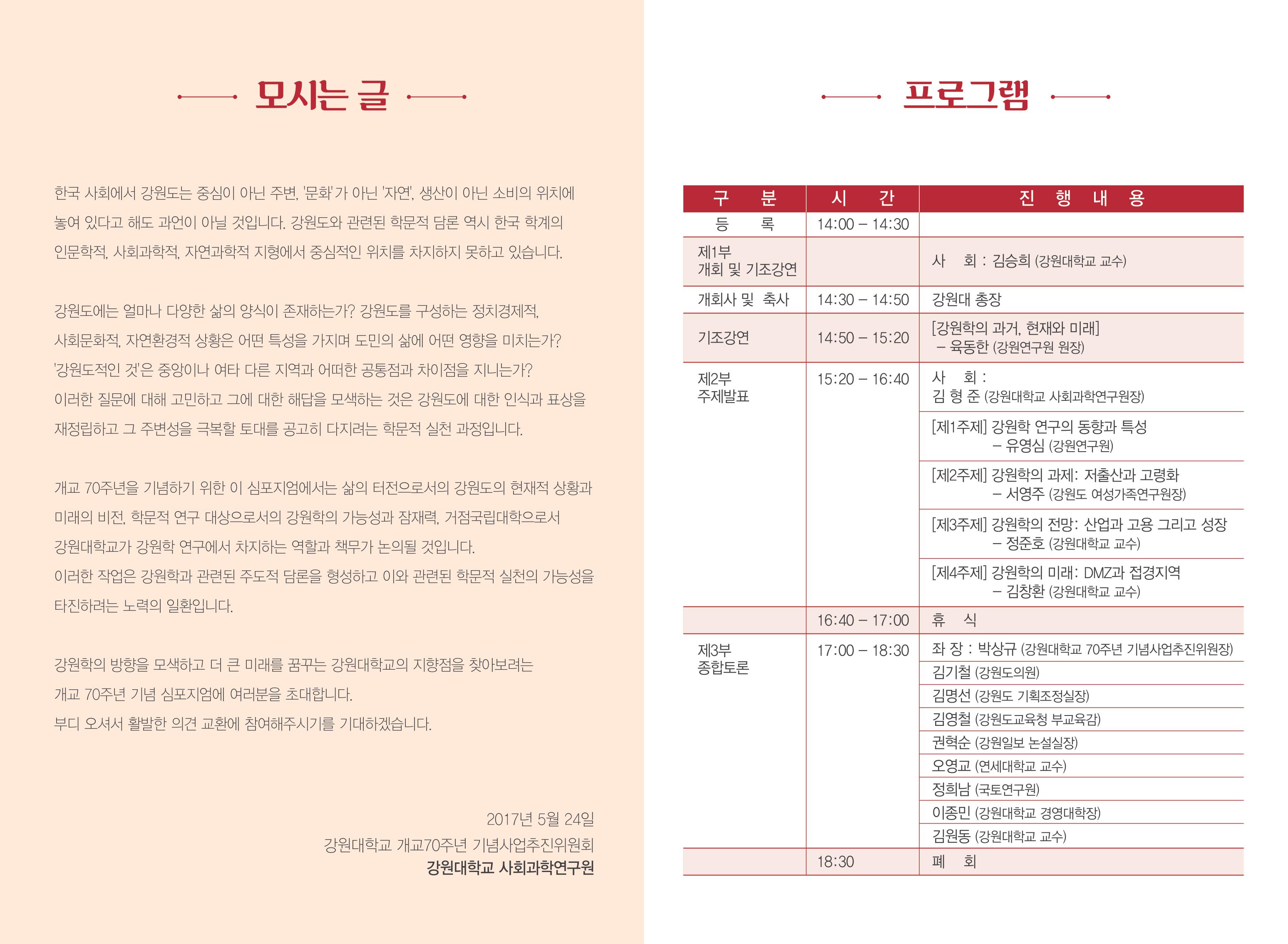 개교70주년 기념 학술심포지엄 <강원학의 현재와 미래 그리고 강원대학교>