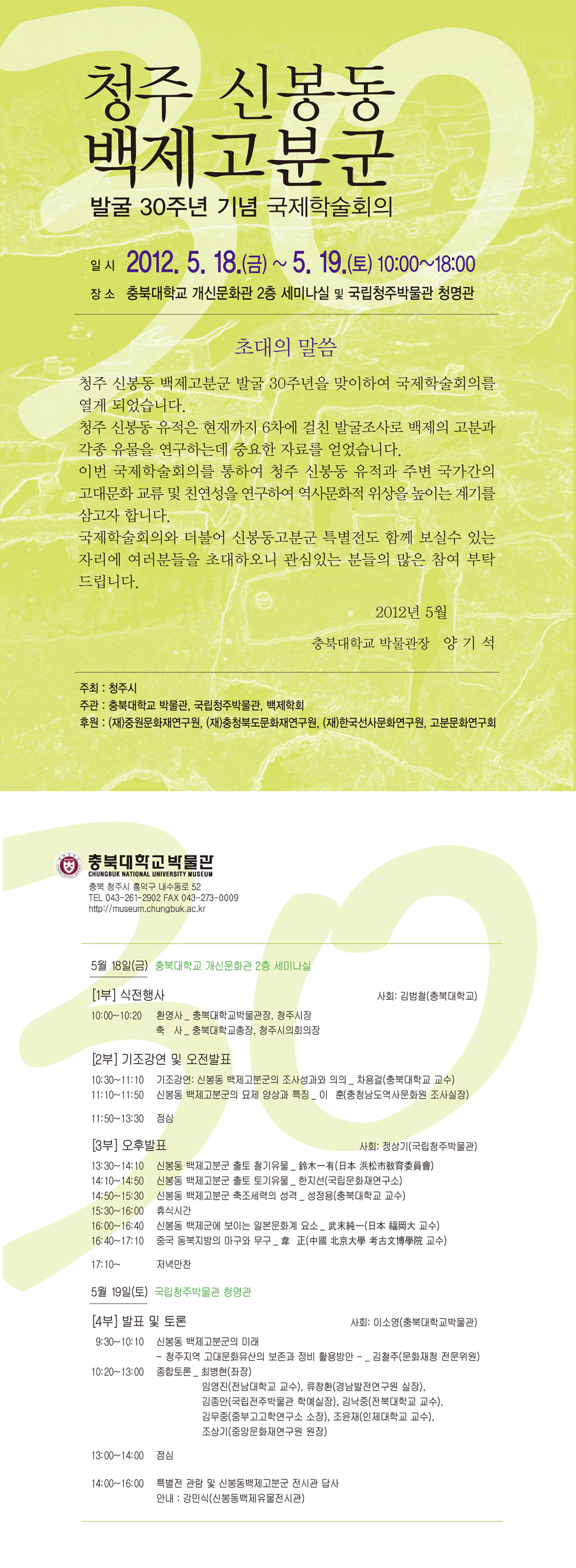 * 대회 참석 등 자세한 사항은 충북대박물관(043-261-2902)으로