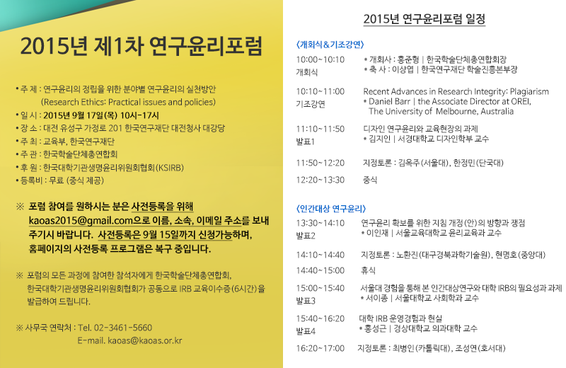 ※ 포럼 참여를 원하시는 분은 사전등록을 위해 kaoas2015@gmail.com으로