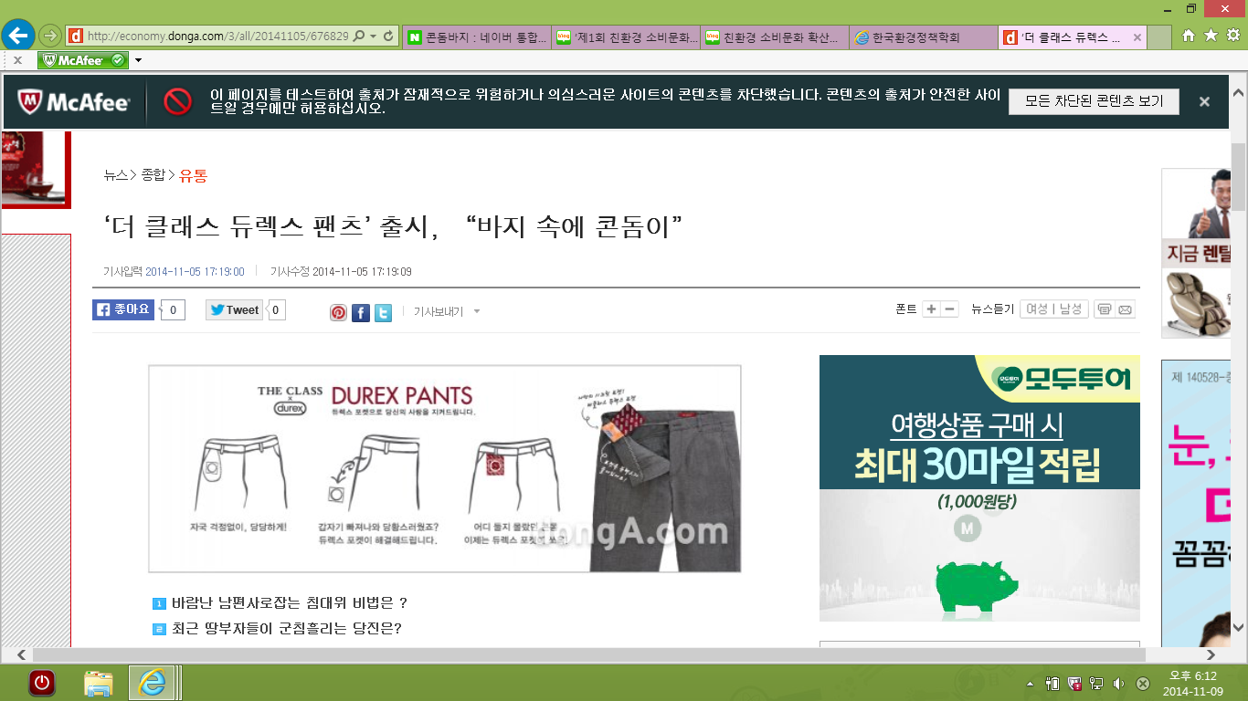 대회측에서도 말한 것 처럼 '콘돔은 대중들 앞에서 말하기 부끄러운 것'임을 확인해 보고싶었습니다. 저희 팀의 대중을 대상으로한 설문조사, 네이버 검색등이 그 점을 확실히 보여주었습니다. 설문조사에서는 예상이 가는 대답, 저희가 예상했던 대답, 그리고 대회측과 같은 대답을 듣게되었습니다. 하지만 네이버 검색 결과는 사회의 모습을 극명하게 보여주었습니다. '콘돔'이라는 두 글자는 청소년 유해 검색단어로 지정되어있었습니다. 저는 성에 대해 보수적인 우리사회의 풍토를 객관적으로 바라보고 싶습니다. 어느 날‘더 클래스 듀렉스 팬츠’출시,“바지 속에 콘돔이'라는 제목을 가진 기사를 보게되었습니다. 바지속에 콘돔을 넣어다닐 수 있게끔 해주는 이 제품은 우리사회에 충격을 안겨주었습니다. 왜 일까요. 왜 제품하나로 커다란 파급효과를 만들어낼 수 있었을 까요. 그 효과는 국민들이 평소에 콘돔을