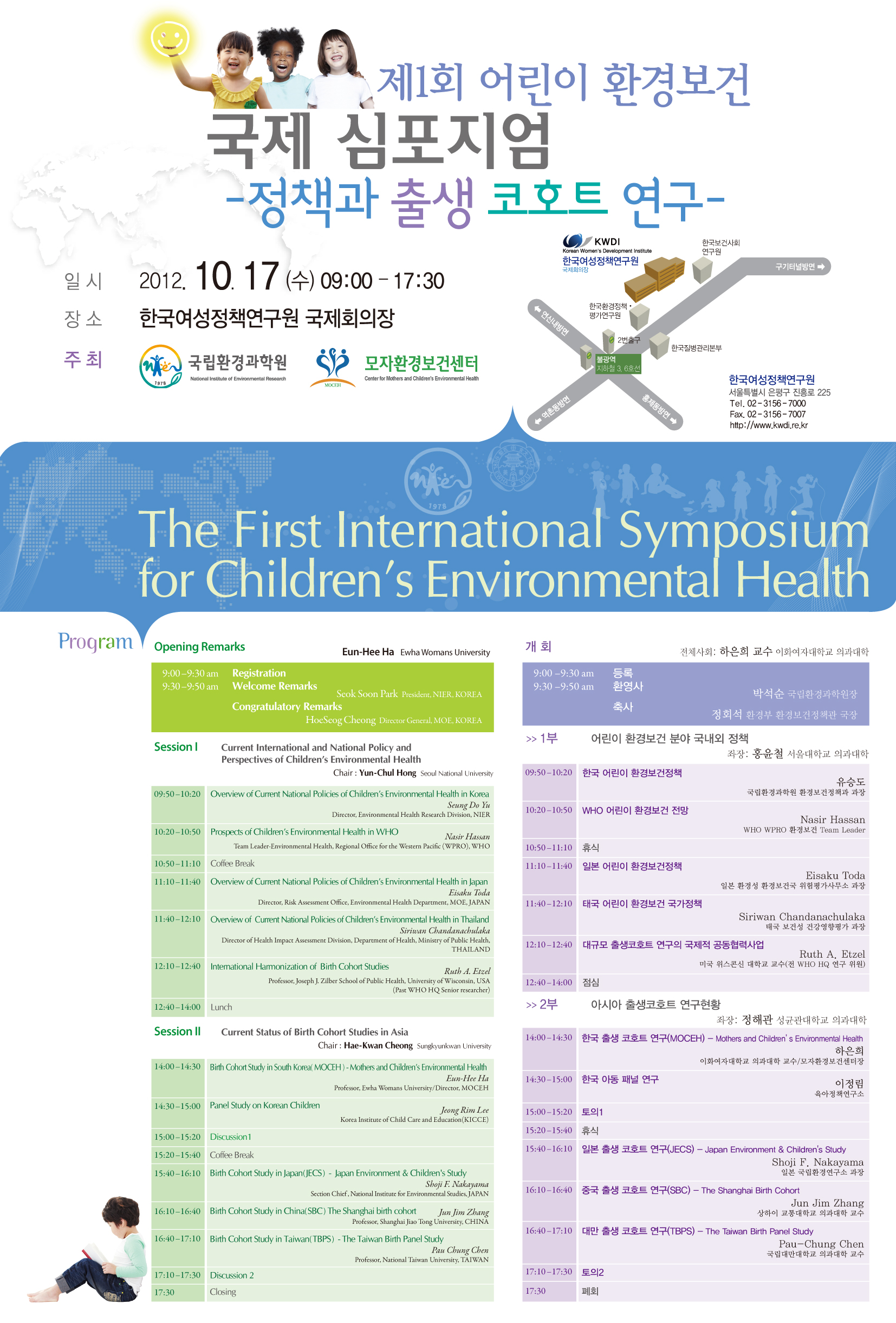 제1회 어린이 환경보건 국제 심포지엄 안내 - 정책과 출생 코호트 연구 -