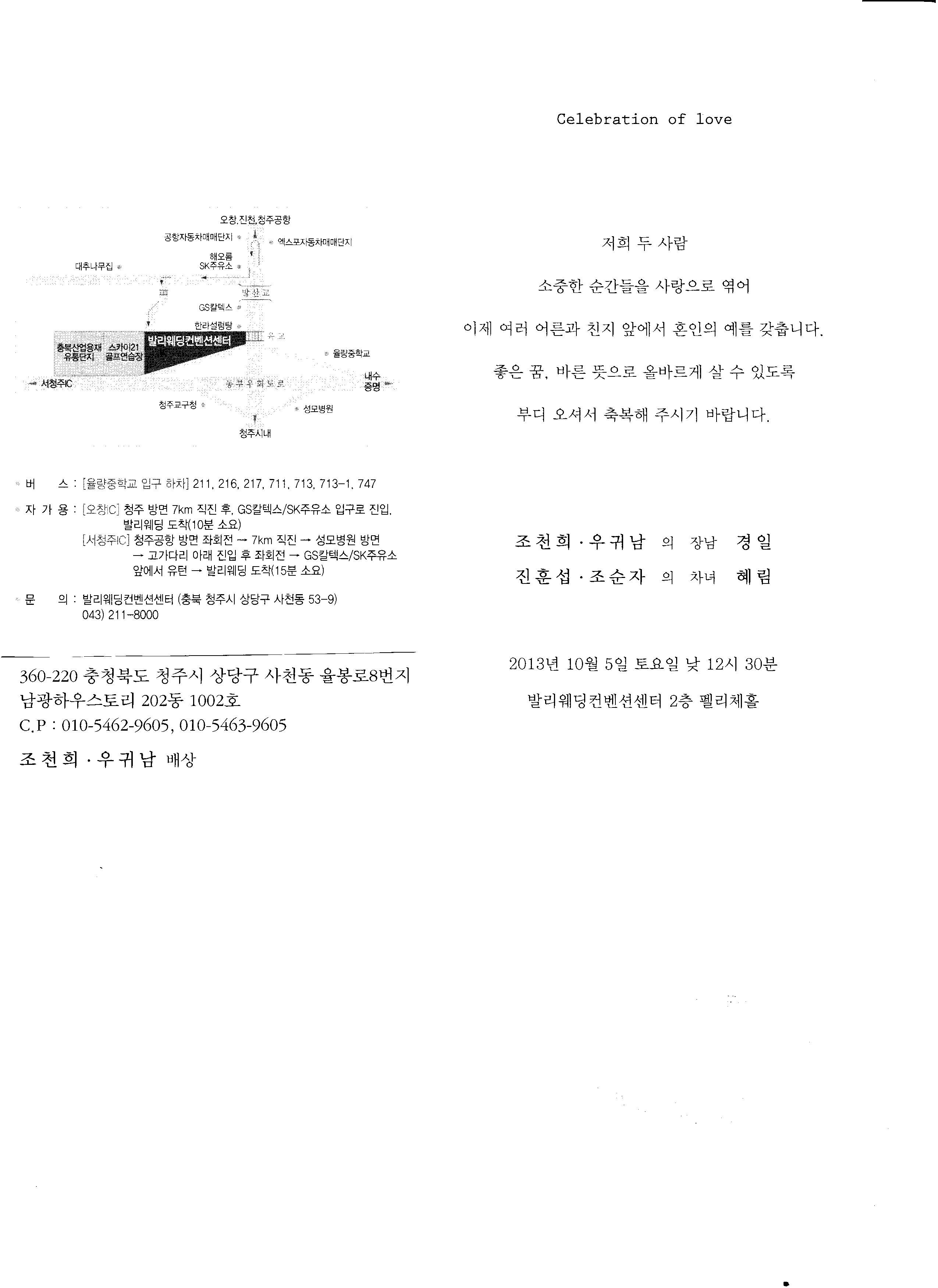 * 장소 : 발리웨딩컨벤션센터 2층 펠리체홀(충북 청주시 상당구 사천동 53-9)