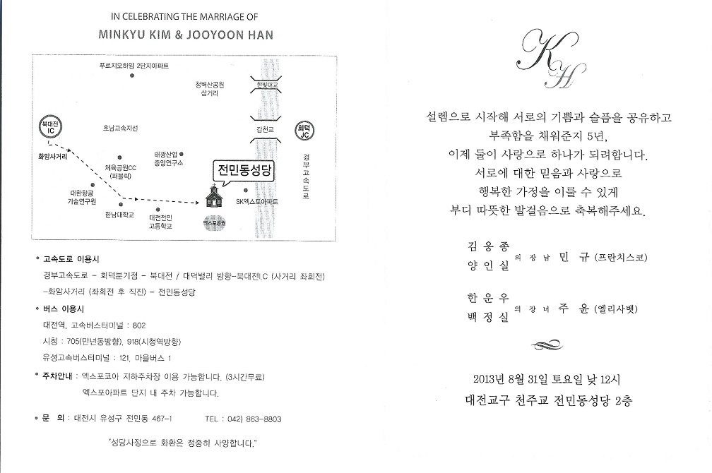 우리학회 이사이신 대전대학교 한운우 교수님의 자녀 결혼을 알려드립니다.