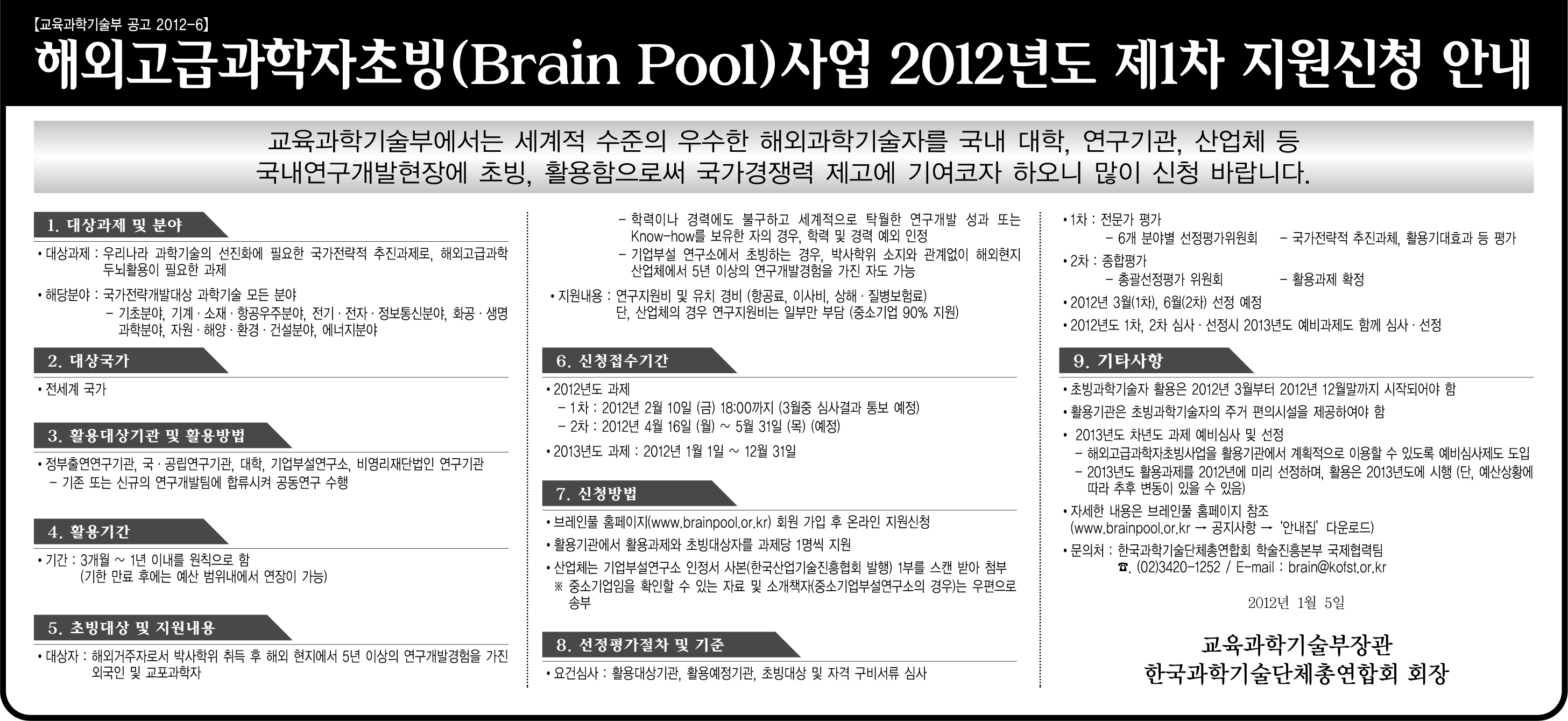 해외고급과학자초빙사업 지원신청 안내(한국과총)