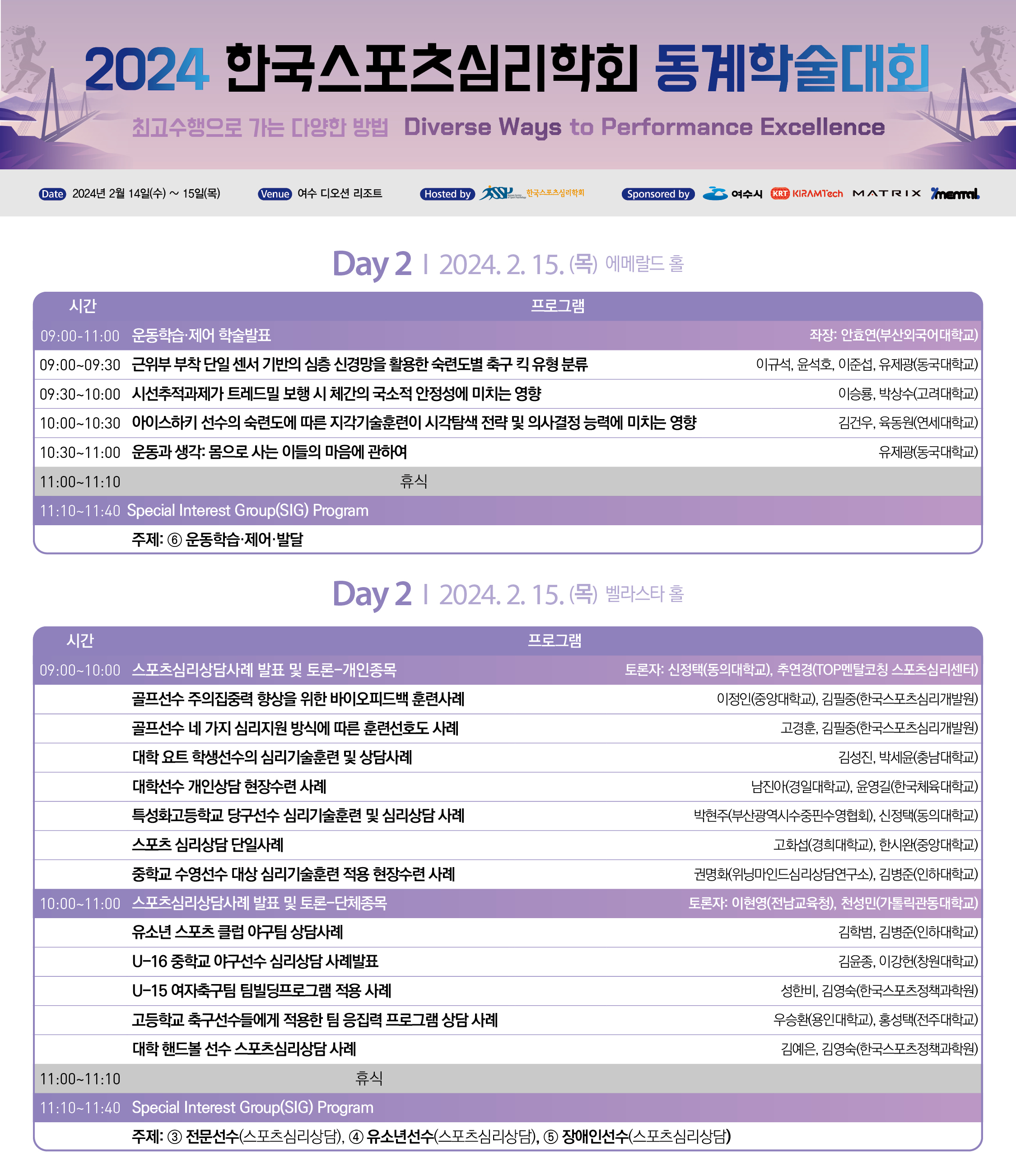 2024년 한국스포츠심리학회 동계학술대회 프로그램 상세일정표 안내