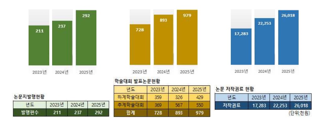 - 전문적 지식 전파를 위한 논문집과 학회지를 발간하며
